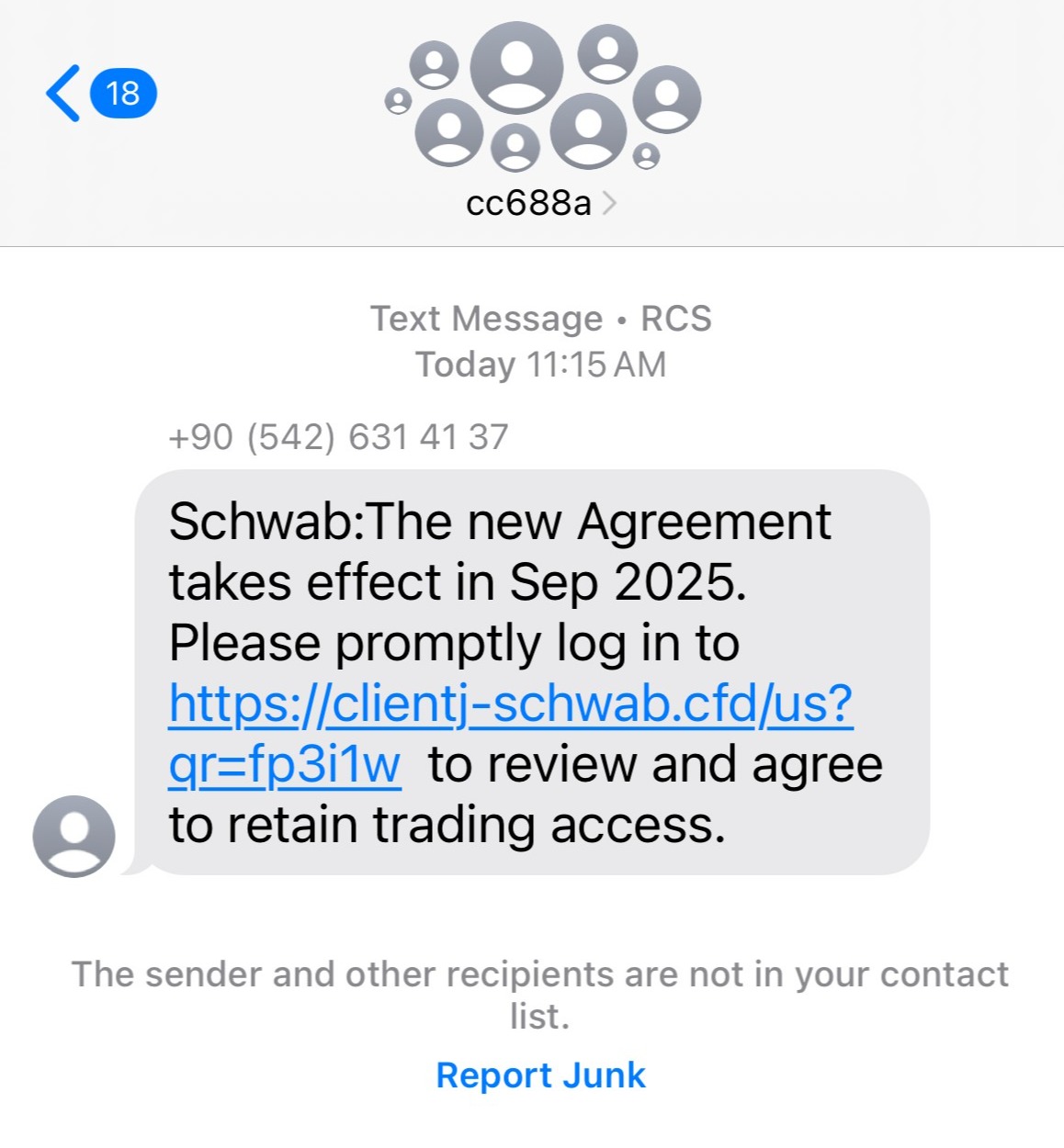 Fraudsters are still out there and trying new scams every day. Here is a screen shot of a recent scam one of our clients informed of us. If you happen to receive this text, delete and report as spam. DO NOT click on the link. If you ever receive a suspicious email or text, please to not hesitate to reach out to us! Have a wonderful rest of your week and as always, let us know if you need anything! Sean, Erin, & Trish.