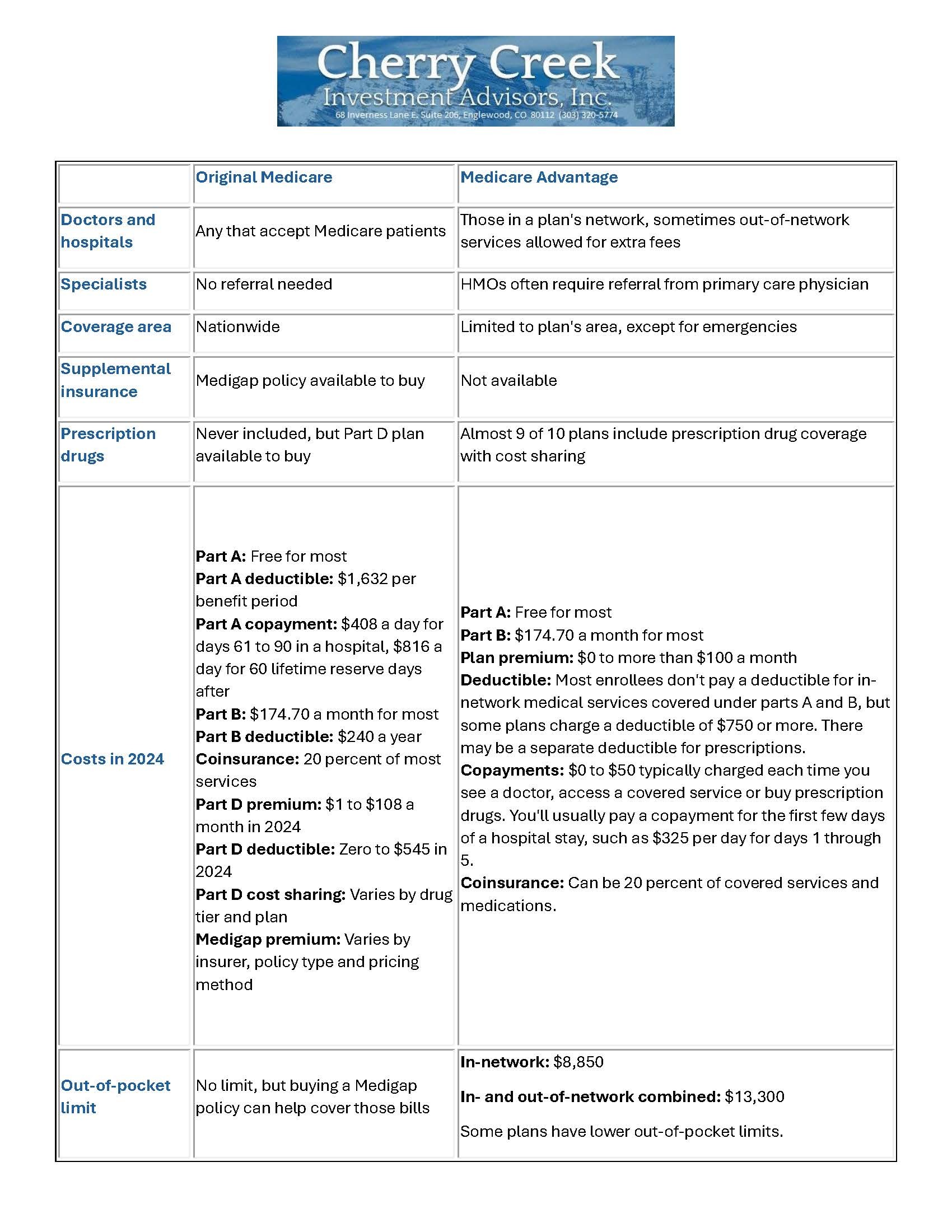For those who are approaching Medicare, below is a great comparison sheet we'd like to share. We hope everyone has a wonder week ahead. And as always, let us know if you need anything! Sean, Erin, & Trish |